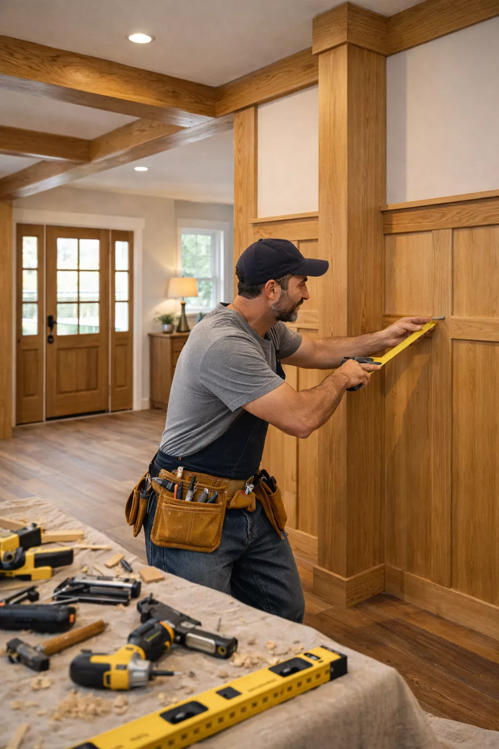 نحن متخصصون في أعمال النجارة والديكور الخشبي بالرياض ولجميع أحياء المدينة. نعمل بفريق من الحرفيين ذوي الخبرة العالية ونستخدم أحدث الأدوات والخامات لتقديم أعمال خشبية راقية ومتينة. نفذ مطابخ، أبواب، غرف نوم، خزائن، ديكورات جدارية، بدلات تلفزيون، وجميع أنواع التفصيل حسب الطلب، مع ضمان الجودة والالتزام بالمواعيد.